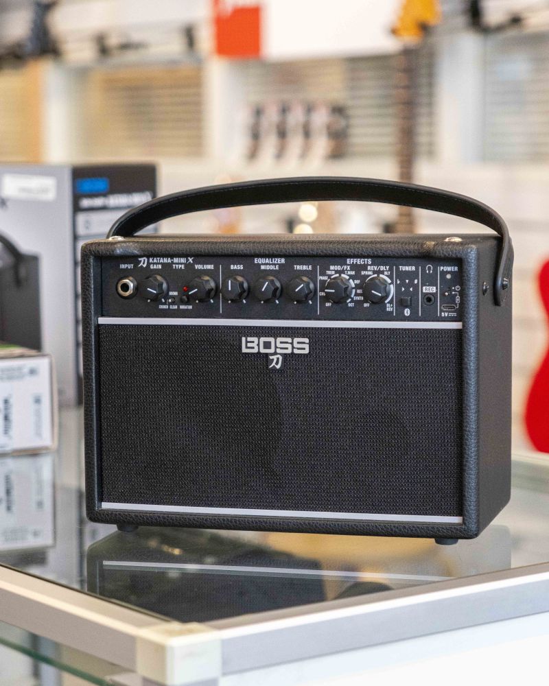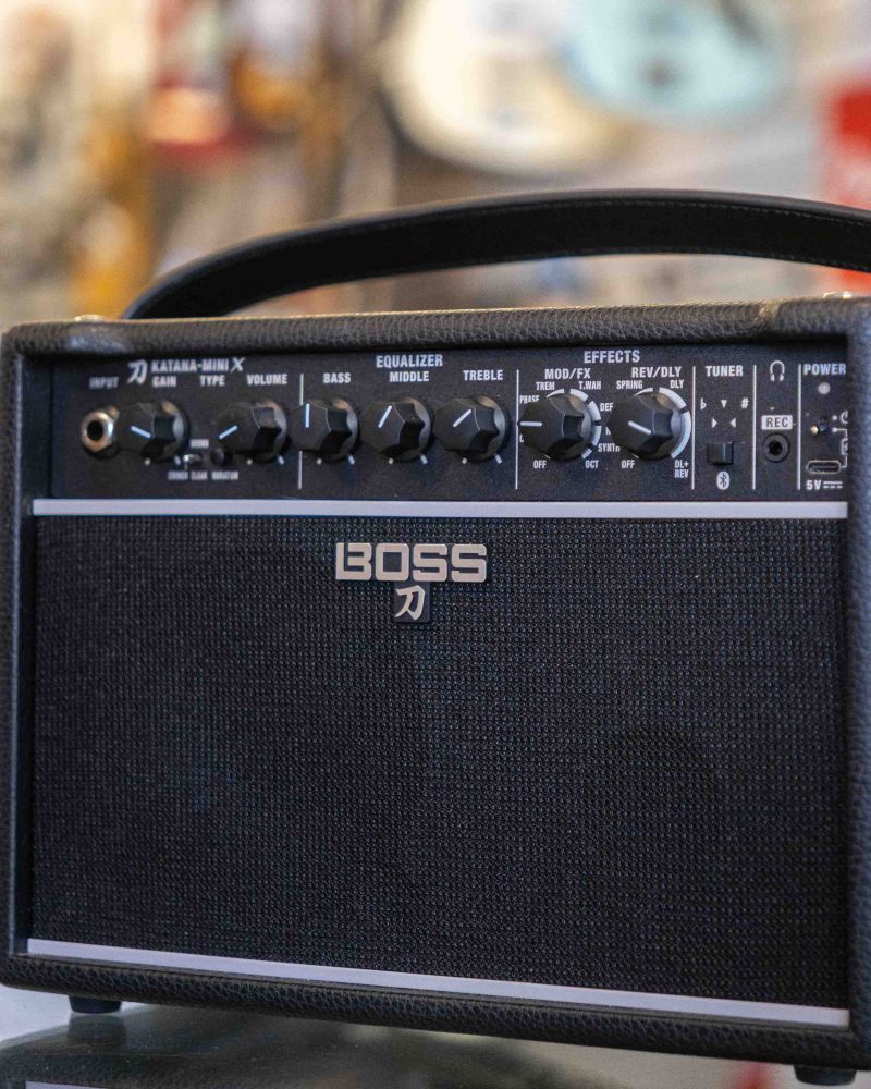 Arvostetun minivahvistin Katana Mini päivittyy! Katana Mini X tuo Katana-soundin saataville pienikokoisena, minne tahansa kulkevana akkukäyttöisenä vahvistimena. Katana Mini X on varustettu ladattavalla akulla, 5" custom-kaiuttimella ja analogisella gain-piirillä sekä BOSS Tube Logicilla, ja lopputuloksena on autenttinen, iso ja luonteikas soundi. 3 vahvistintyyppiä ja kaksi itsenäistä efektiosaa 10 valittavalla efektityypillä mahdollistavat monipuolisen soundimaailman genreen katsomatta.