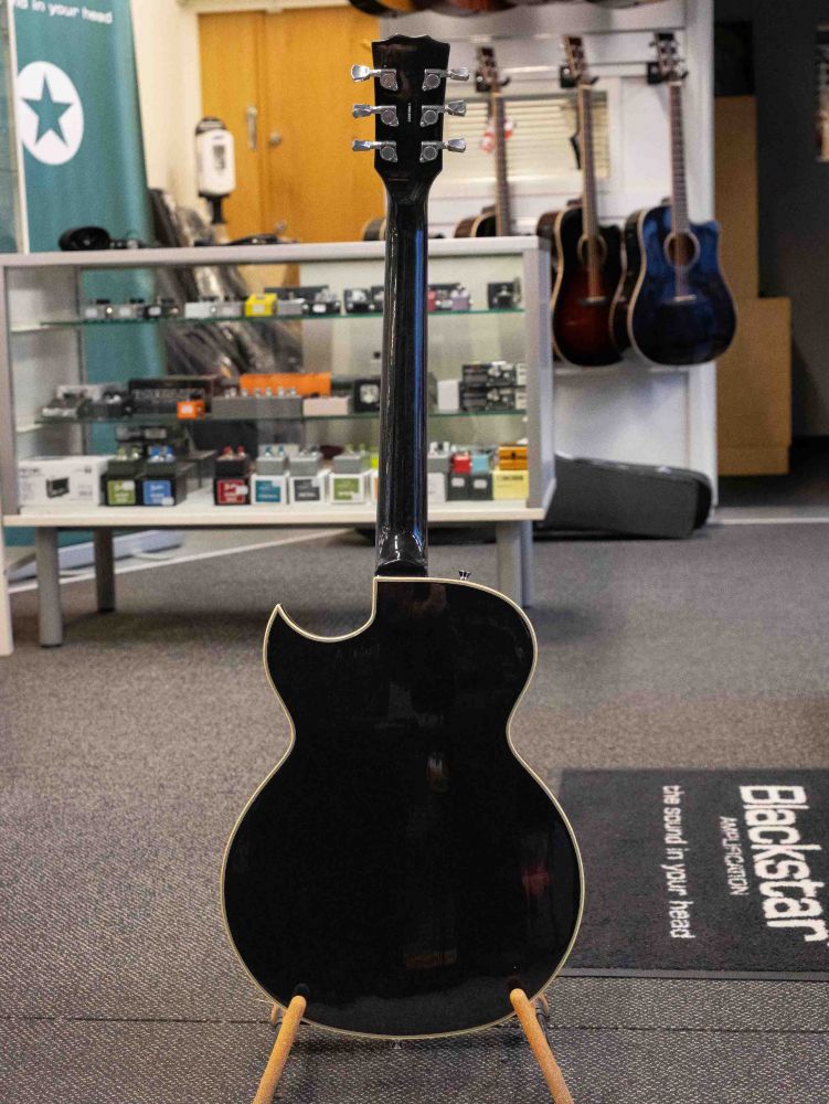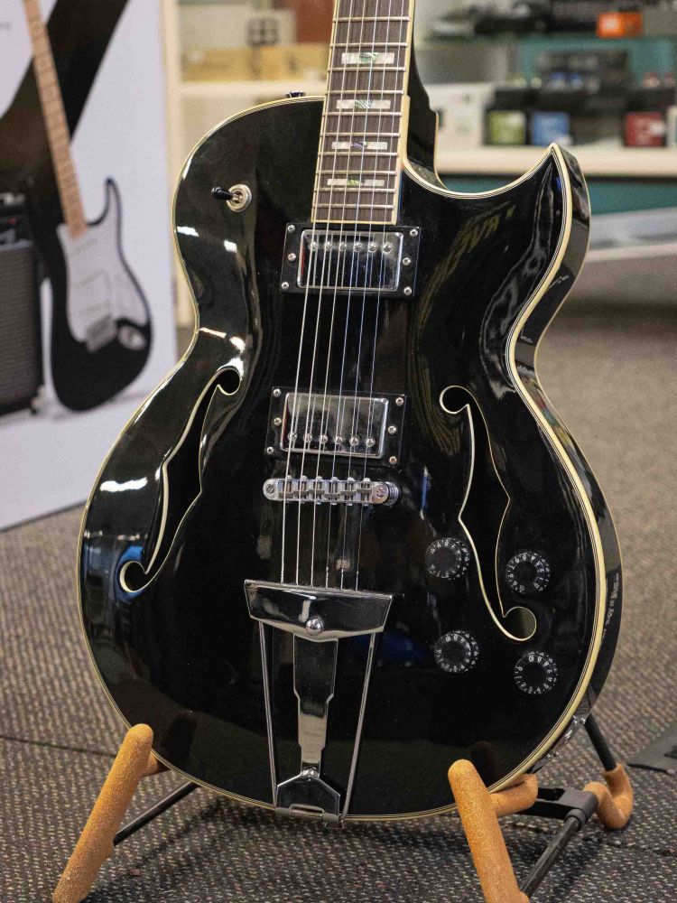- Body: Carved semi acoustic body of Mahogany, solid Mahogny in middle for stabel mount of bridge.
