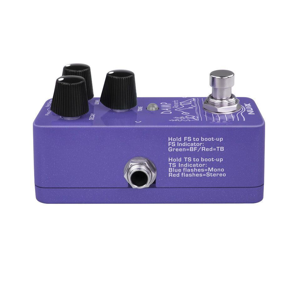 Nux NRV-3 Damp Reverb on erinomainen minikokoinen kaikupedaali kolmella sähkökitaran olennaisimmalla kaikuefektillä sekä jalkakytkimen taakse piilotetuilla Shimmer- ja Freeze-efekteillä. NRV-3 pitää sisällään klassisen 60-luvun kombovahvistimista tutun jousikaiun sekä legendaarisista studiolaitteista tutut laattakaiun ja hallikaiun. Pitämällä jalkakytkintä pohjassa saa käytössä olevasta efektistä riippuen joko soundiin lisää eteerisiä yläoktaaveja eli shimmeriä tai jähmetettyä kaikuefektin paikalleen, soimaan loputtomiin. Damp Reverb toimii myös stereona TRS-kaapelilla.